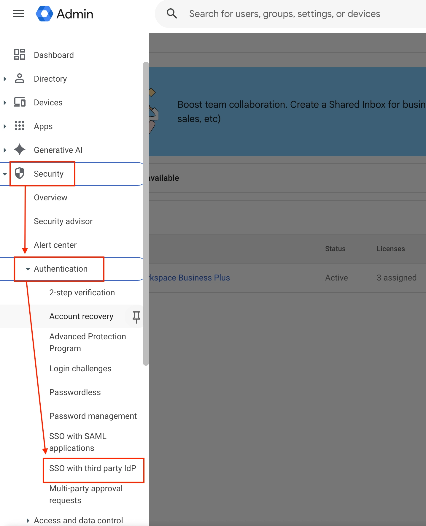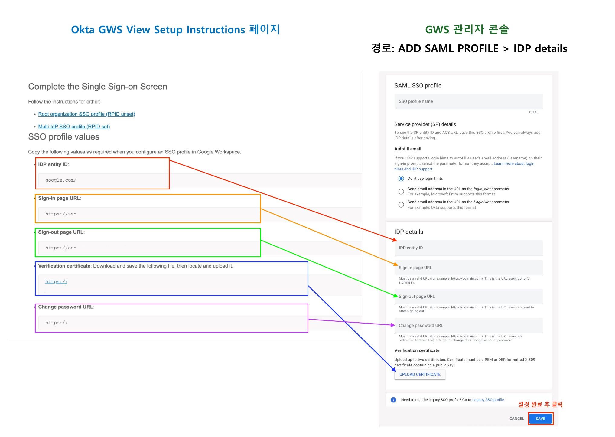Step 2. Google admin console에서 SSO 설정