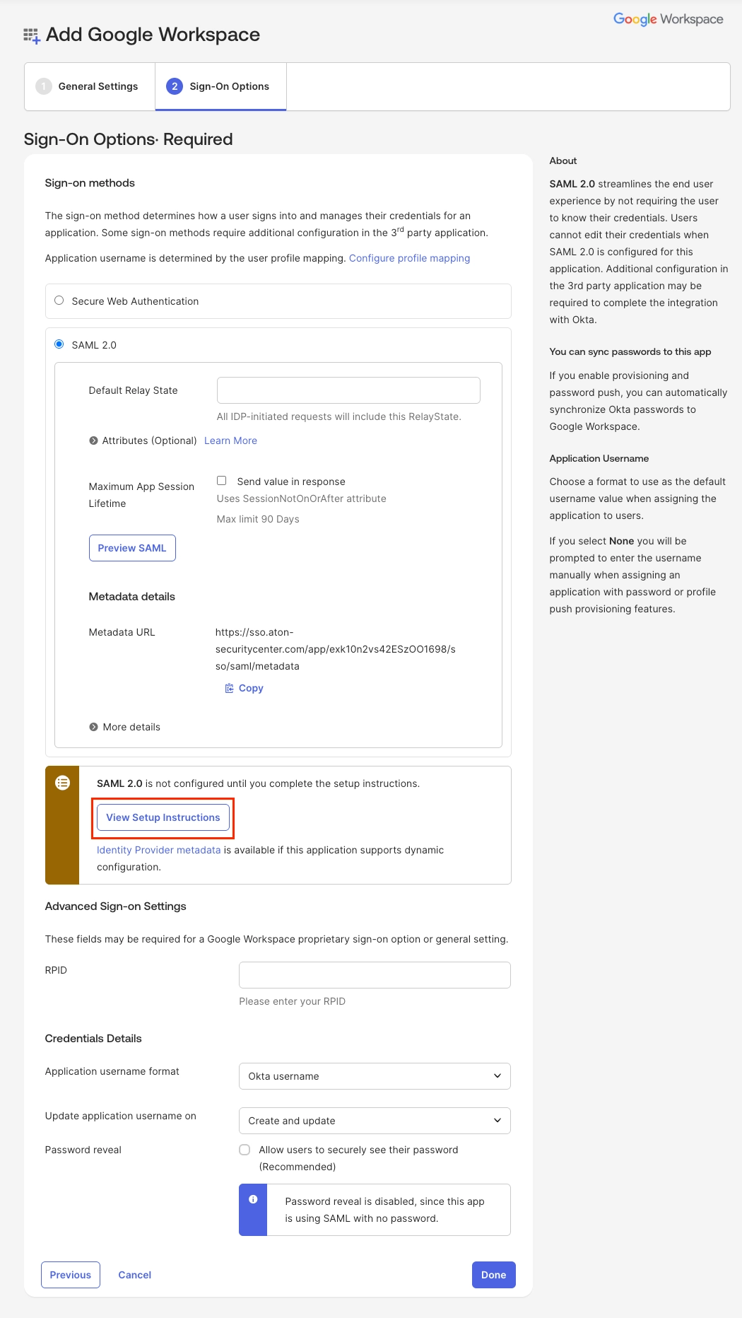 Sync Okta Password: 사용자가 Okta에서 사용하는 동일한 비밀번호를 Google Workspace 계정에도 동기화합니다.