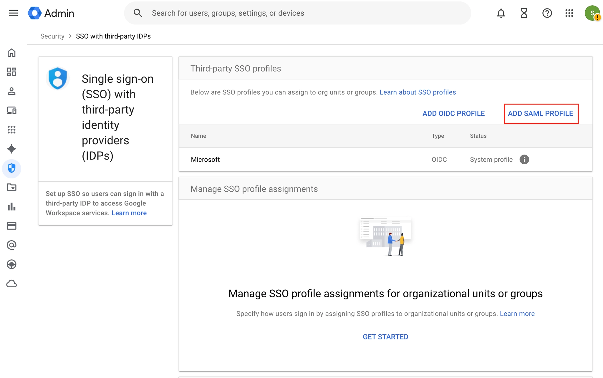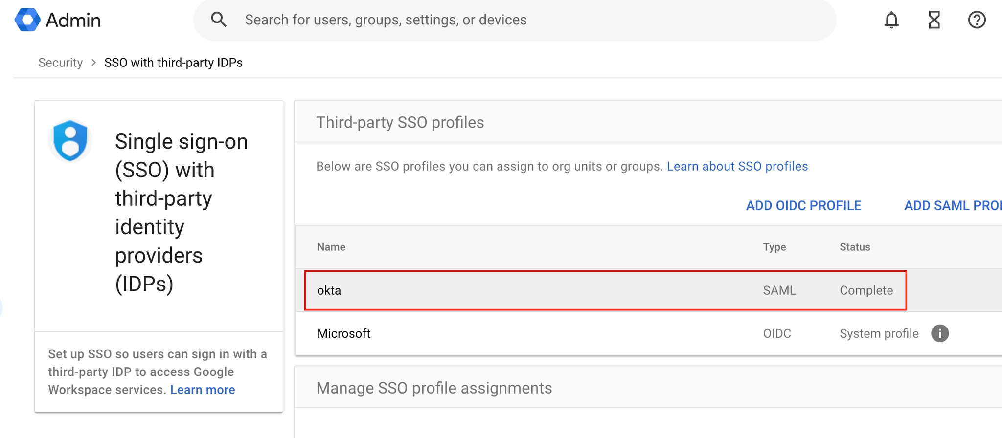 해당 페이지를 통해 Google Workspace의 Admin console에서 SSO 설정을 할 수 있습니다.