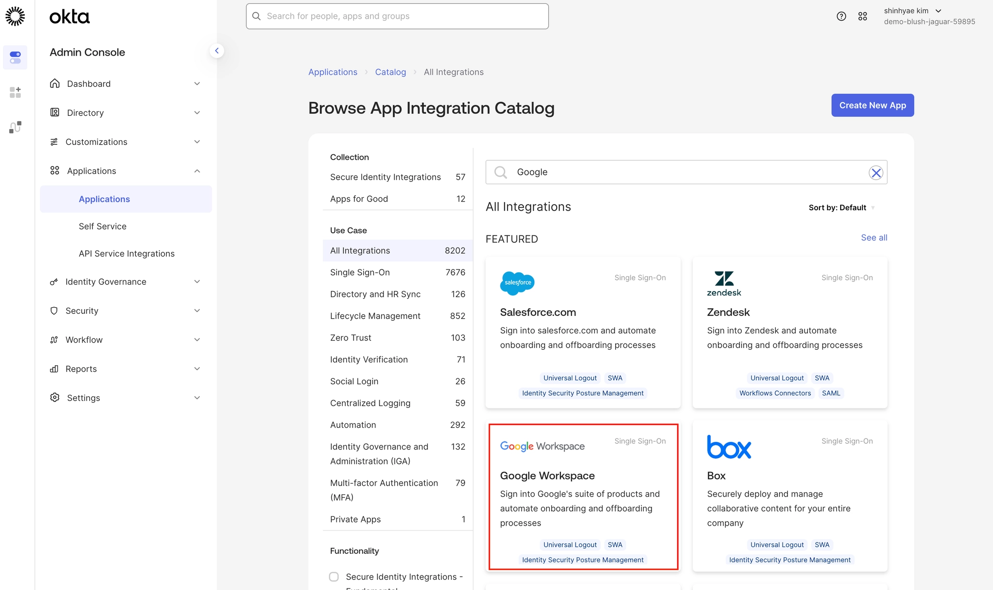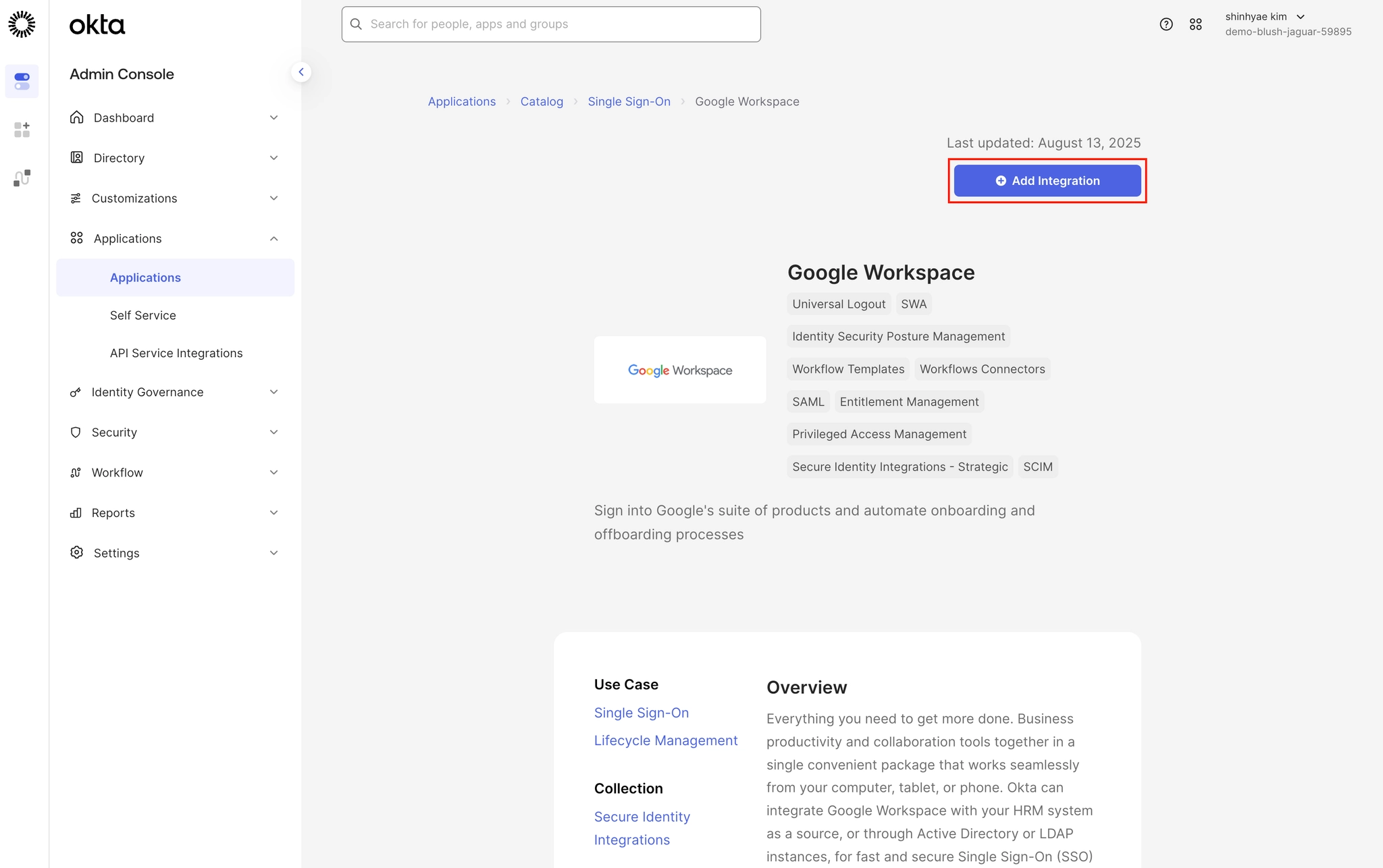 Step 1. Okta에서 GWS 앱 추가 및 설정
