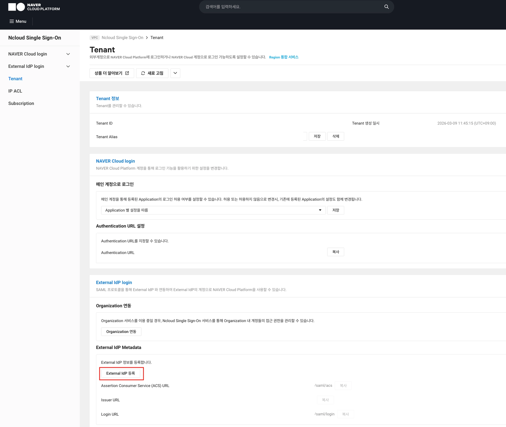 Step 2. NCP에서 External IdP 등록 및 SSO 설정