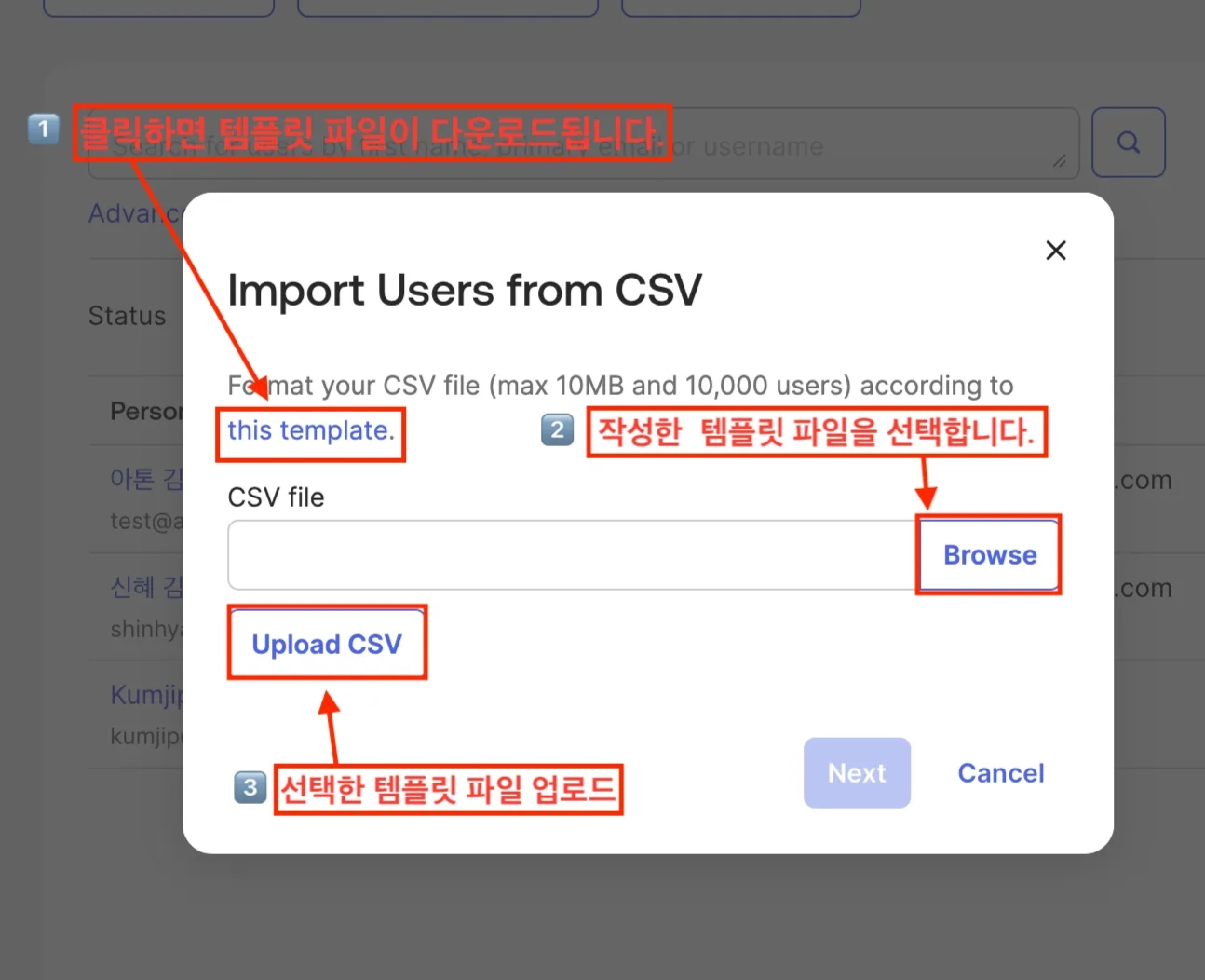 사용자 가져오기 탬플릿 파일