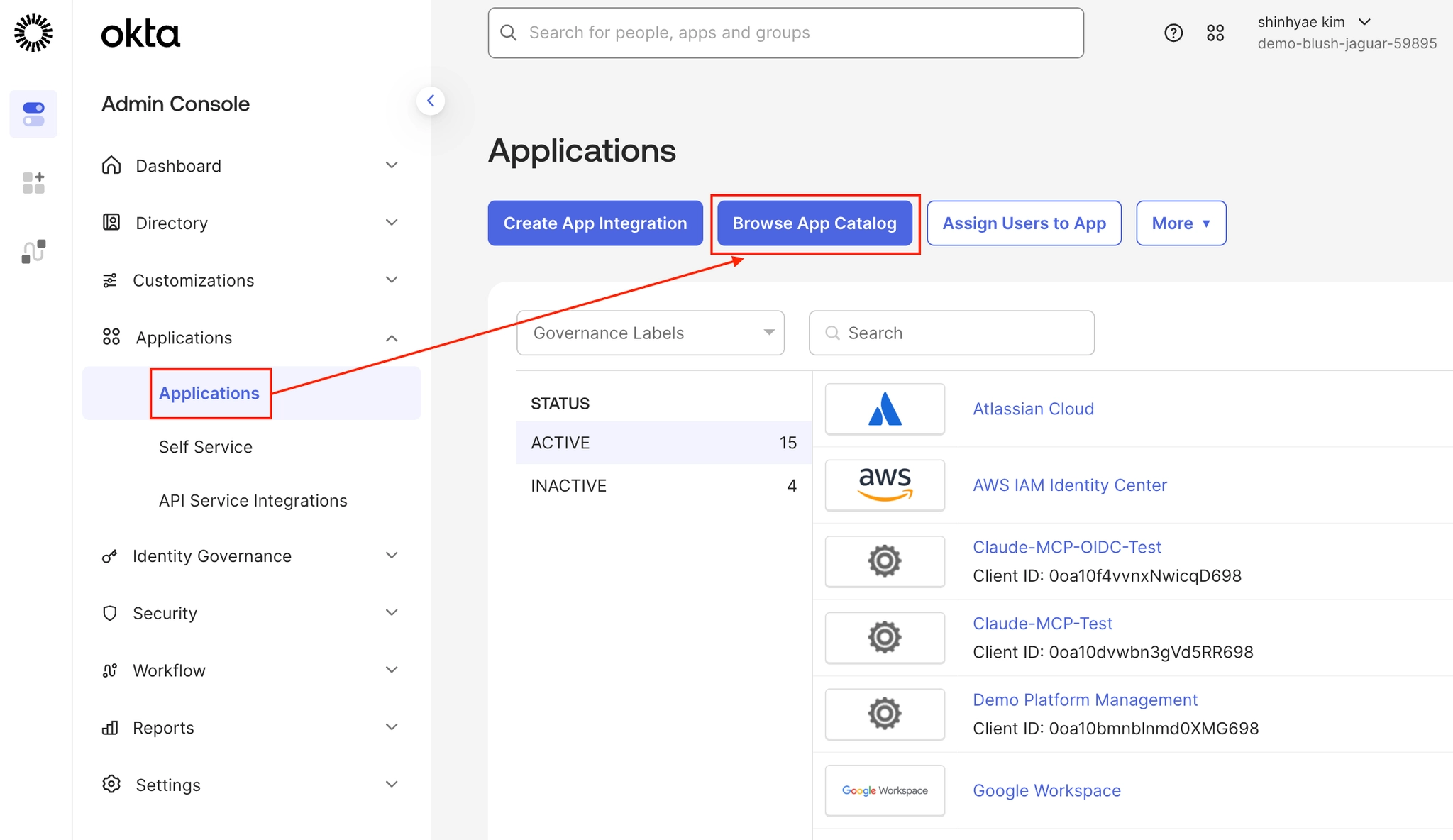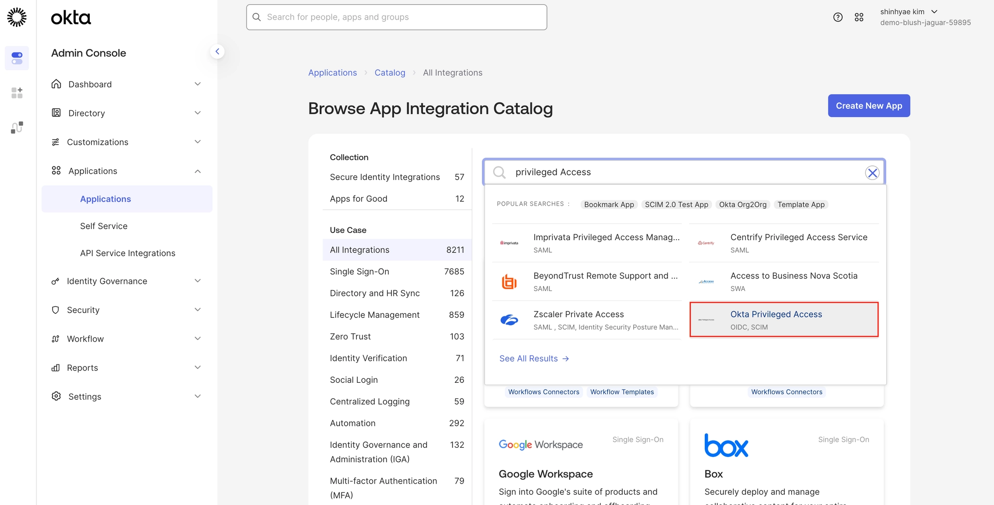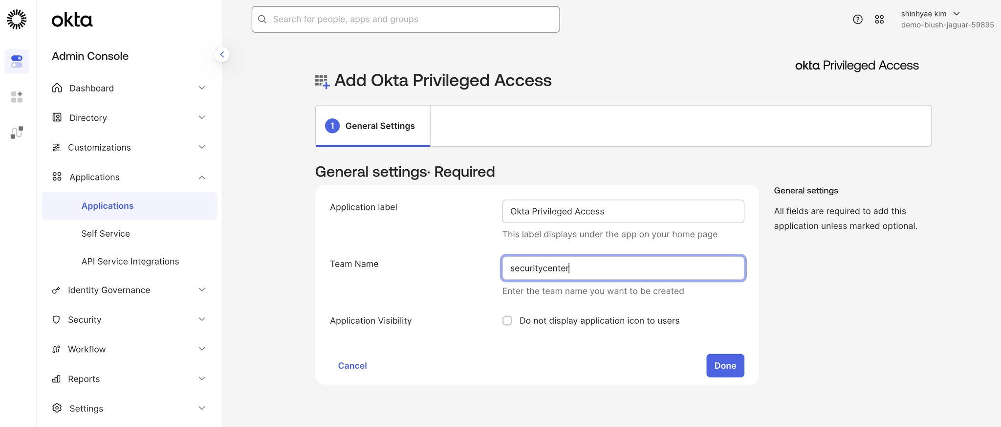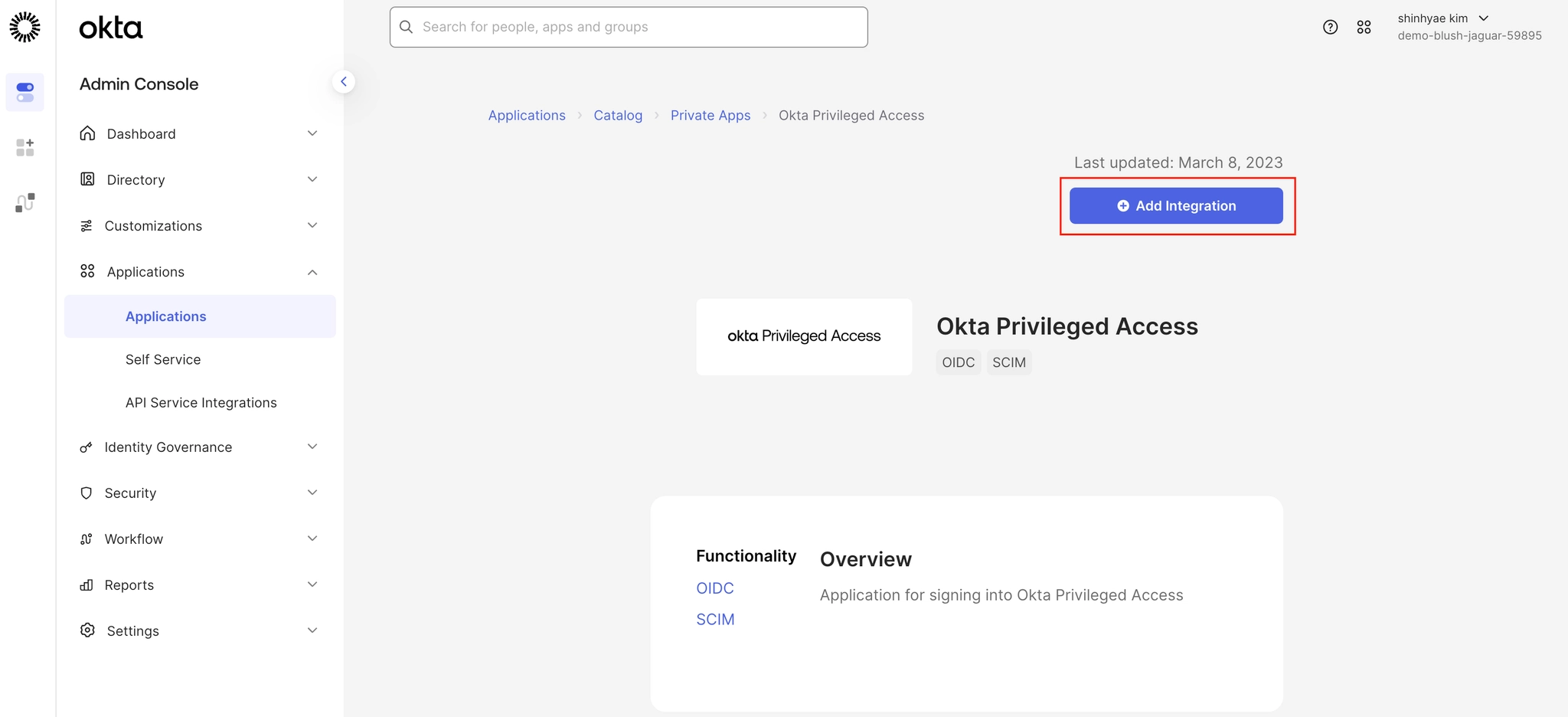 1. Okta 조직에 Okta 권한 액세스 앱을 추가