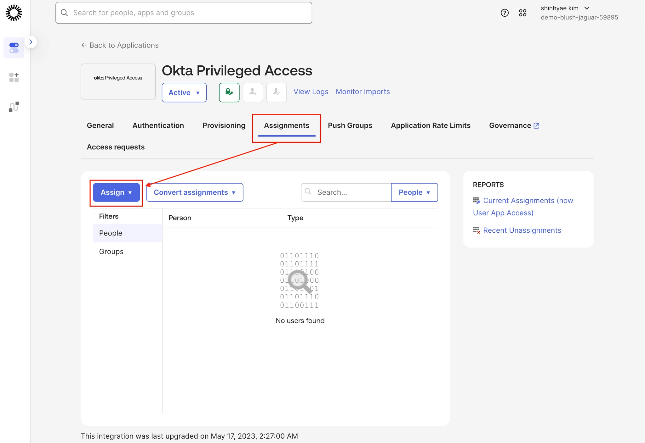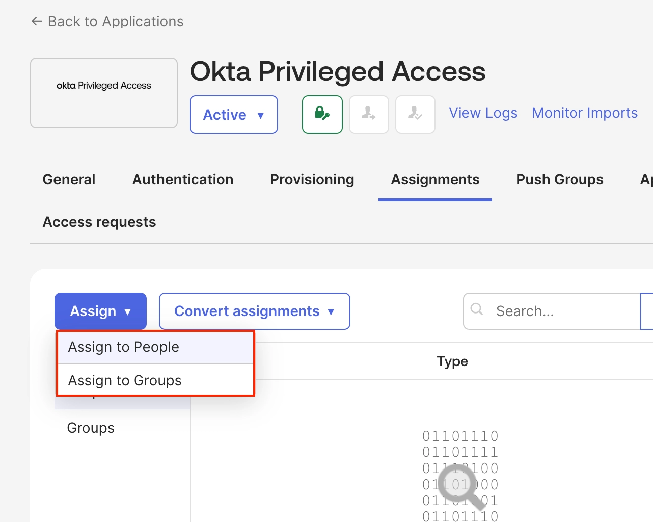경로: Okta Privileged Access 앱 선택 → Assignments → Assign
