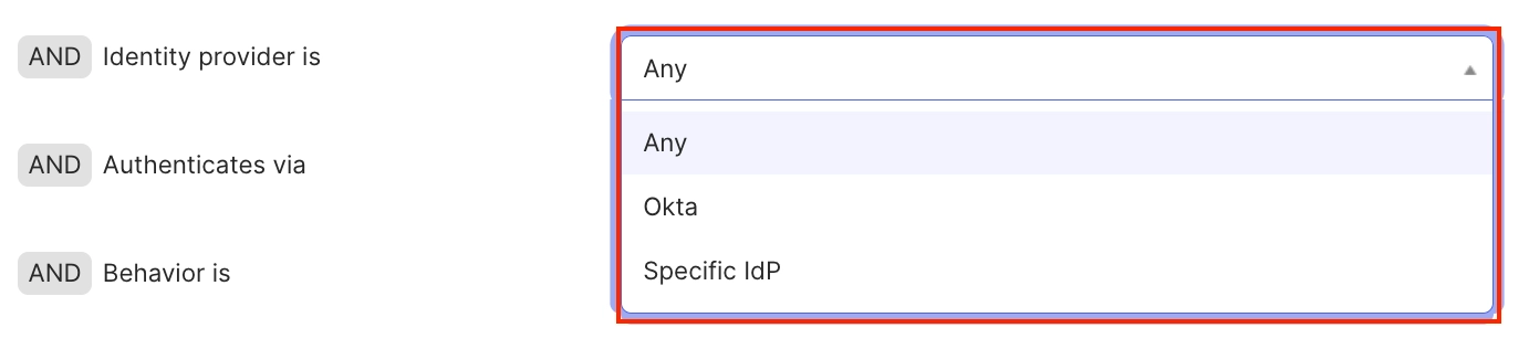 Specific IdP(특정 IdP를 Okta에 연동해야 사용할 수 있습니다.)