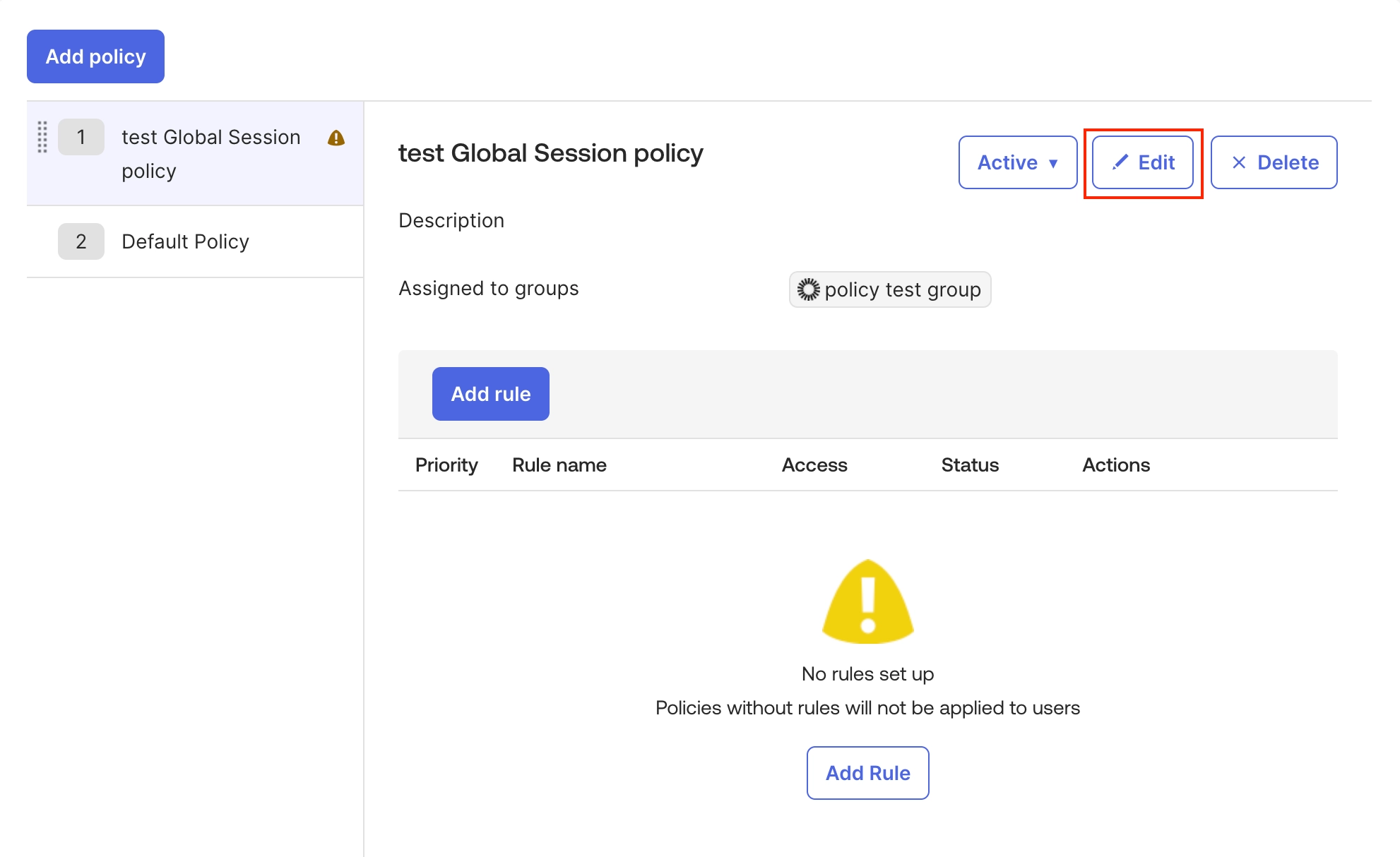 생성한 정책을 수정할 경우, “Edit” 버튼 클릭하고 내용 수정 후 “Update Policy”를 클릭합니다.