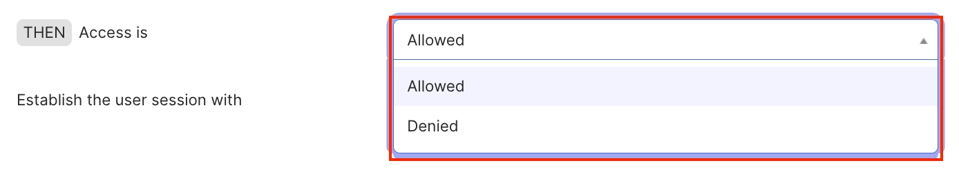 Access is: 이 규칙이 접근을 허용할지 거부할지 조건을 설정하는 옵션