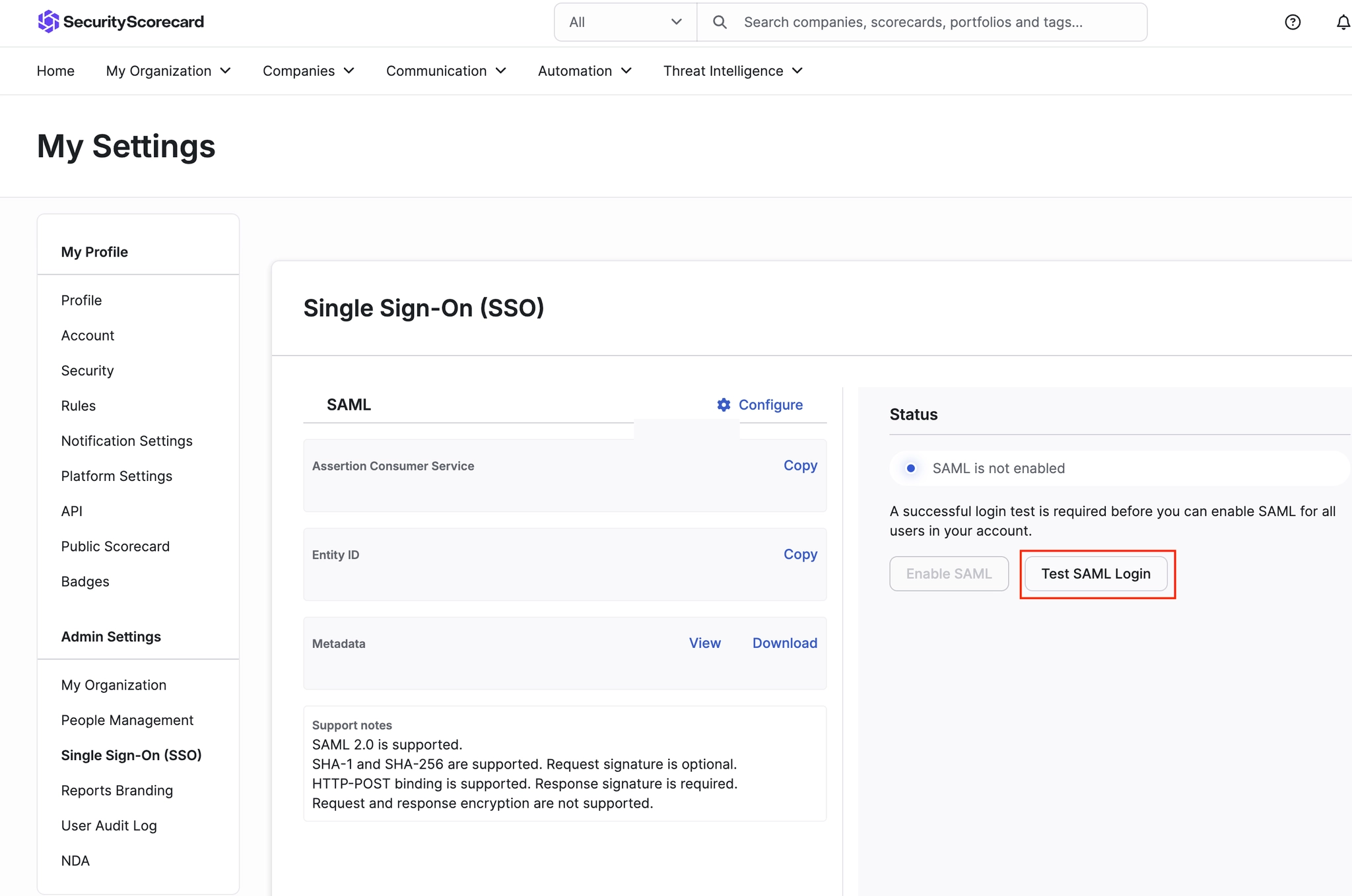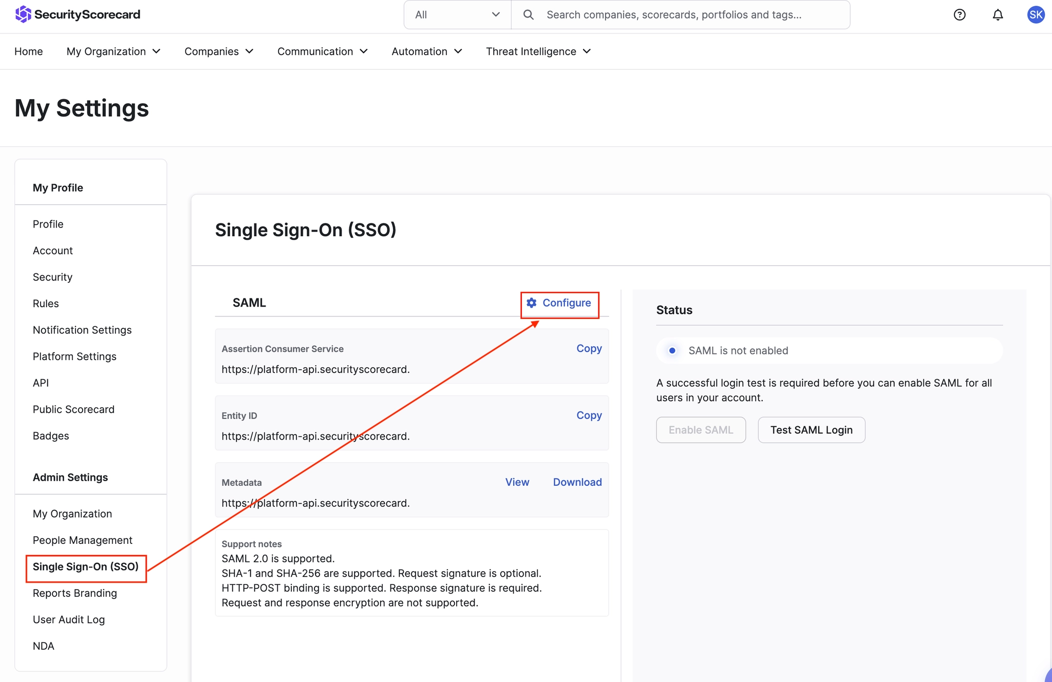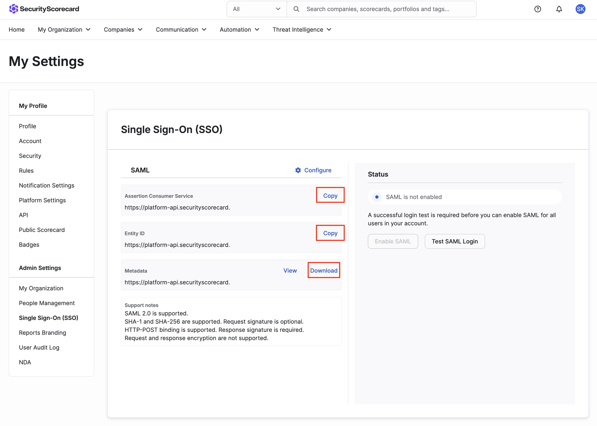 Step 1. SecurityScorecard에서 SP 정보 확인