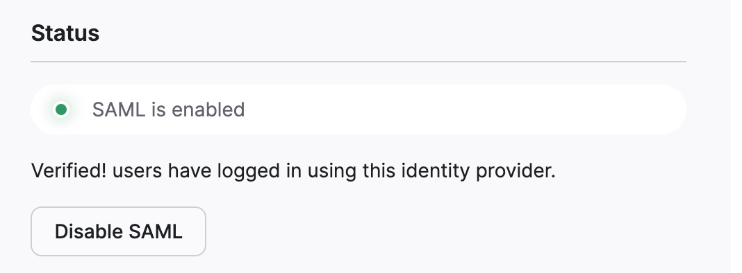 “SAML is enabled”라는 문구가 표시됩니다.