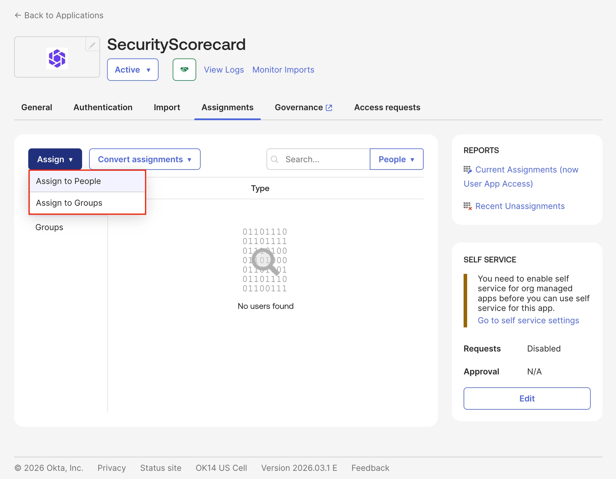 경로: Application → Application → Security scorecard 앱 → Assignments → Assign to People or Groups